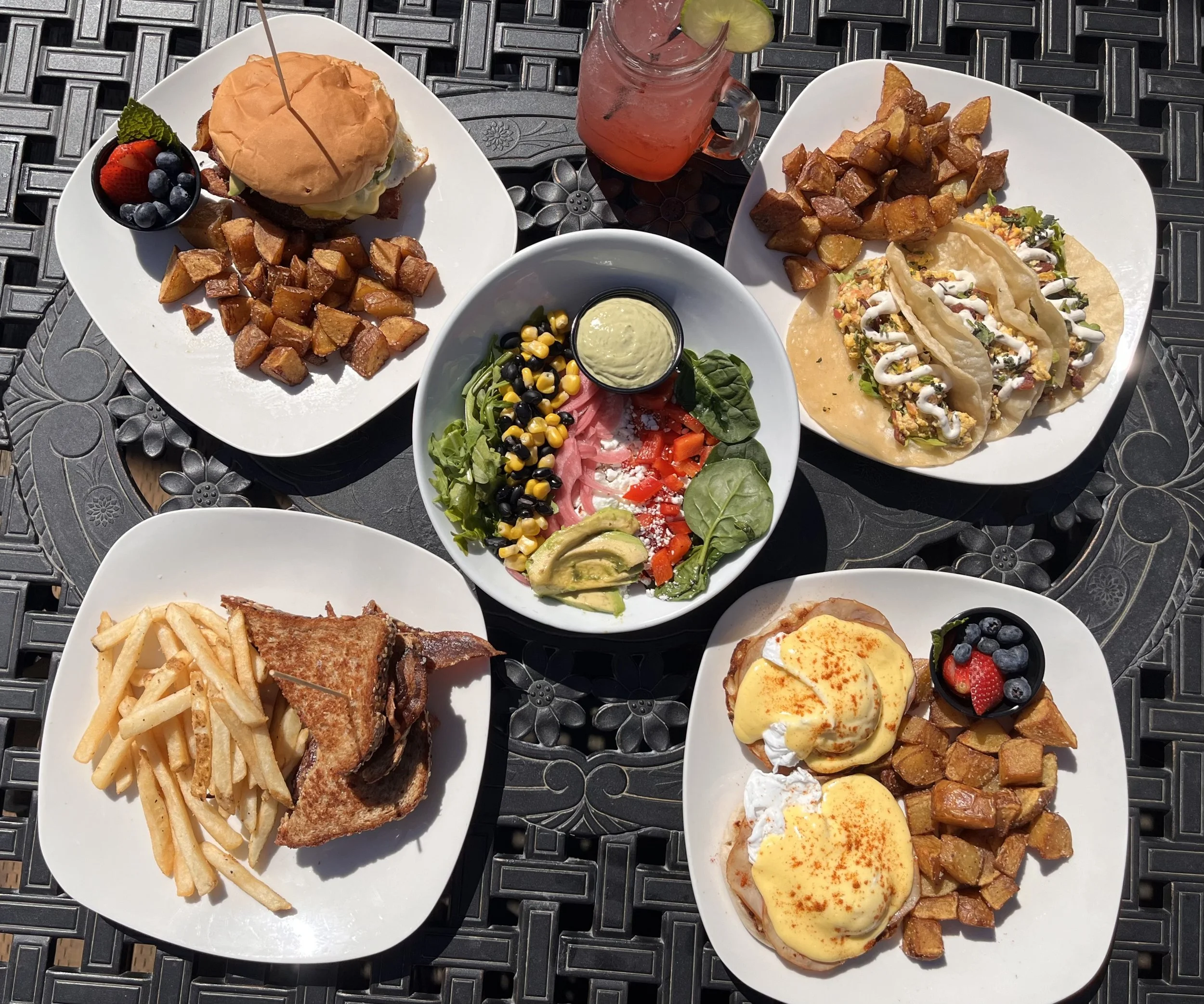 house-made veggie patty, eggs, spinach, tomato, house-made hollandaise served with potatoes and a side of fruit
